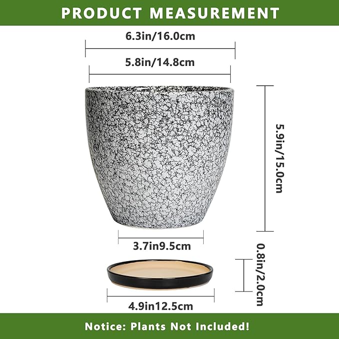 - With Drainage Hole and Saucer: The drainage holes can effectively remove excess water from the ceramic pot to avoid root rot, while the ceramic tray can catch excess water seeping out from the bottom of the ceramic pot for plant to keep the home environment tidy