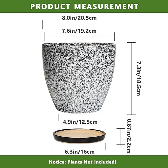 - Plant Pots with Drainage Holes and Saucers: The drainage holes can effectively remove excess water from the ceramic planter to avoid root rot; while the ceramic plant tray can catch excess water seeping out from the bottom of the ceramic flower pot to keep the home environment tidy