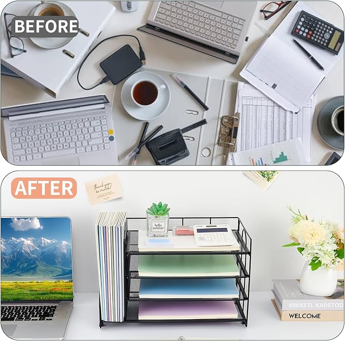 - 【Versatile Storage Solution】This desk organizer offers multiple compartments and a separate magazine holder, giving you flexible storage for files, books, A4 papers, and office supplies. Maximize your desktop space and keep everything neatly within reach.