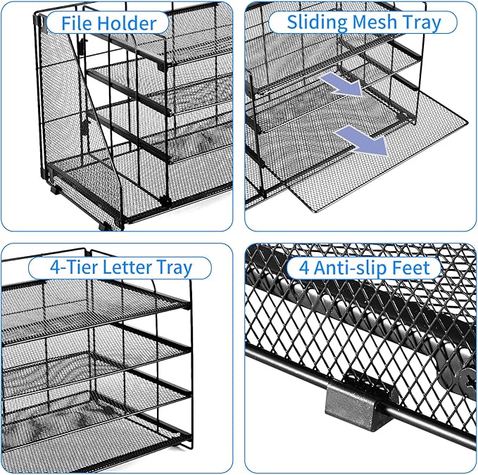 - 【Heavy-Duty & Stable】Crafted from premium metal with reinforced construction, this file organizer supports up to 40 lbs without bending. Non-slip rubber feet keep it firmly in place while protecting your desktop from scratches.