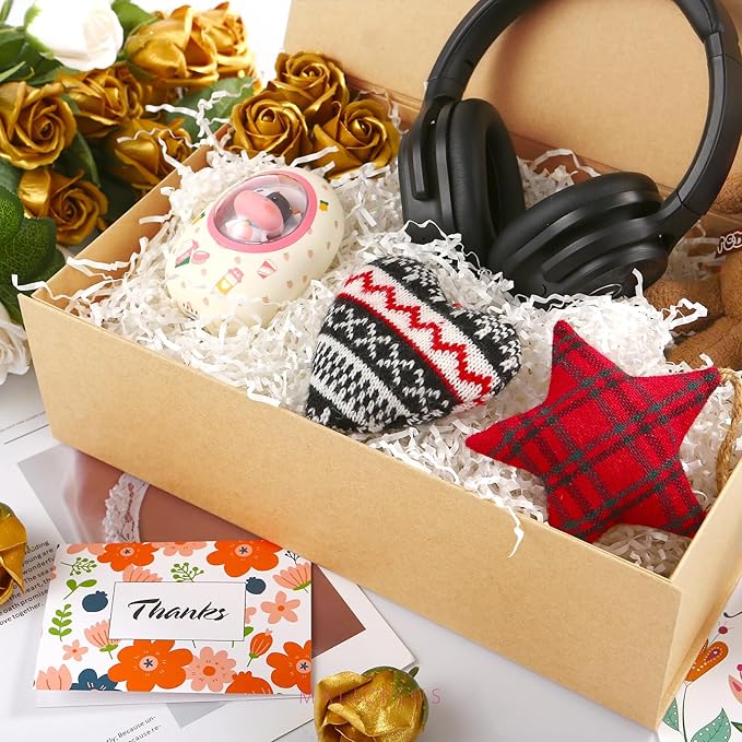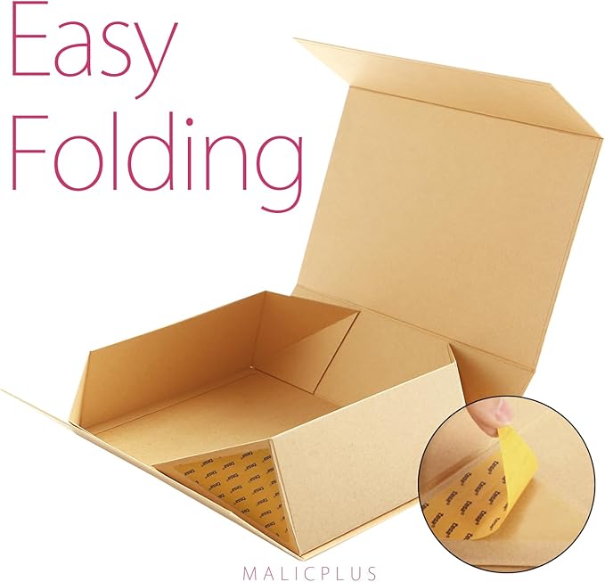 - Convenience: This kraft gift box is shipped flat. And the surface of the box is covered with film to make it easier to clean, only need wipe gently with dry cloth to restore the bright