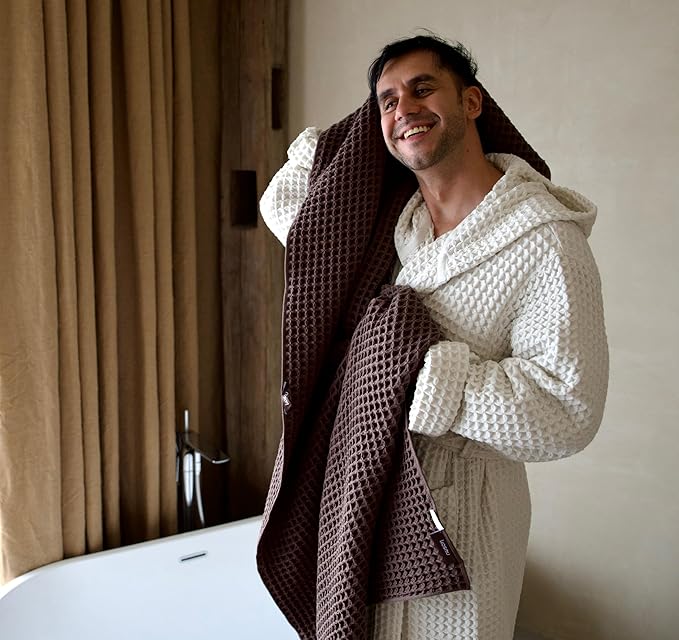 - A dry towel is a clean towel. The airy waffles effectively prevent the multiplication of odor caused by bacteria and fungus. You will never reach out to a wet, musty towel after a shower anymore.