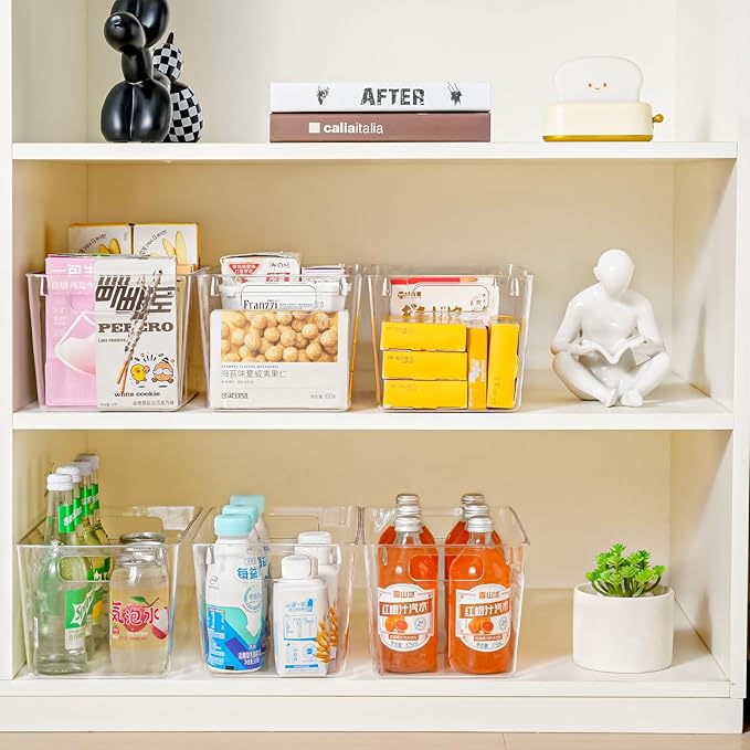 12 Pack Large Clear Plastic Storage Bins,Plastic Containers with Handle for Pantry Organizer and Storage,Perfect for Kitchen,Fridge,Cabinet, Closet,Bathroom Under Sink Storage