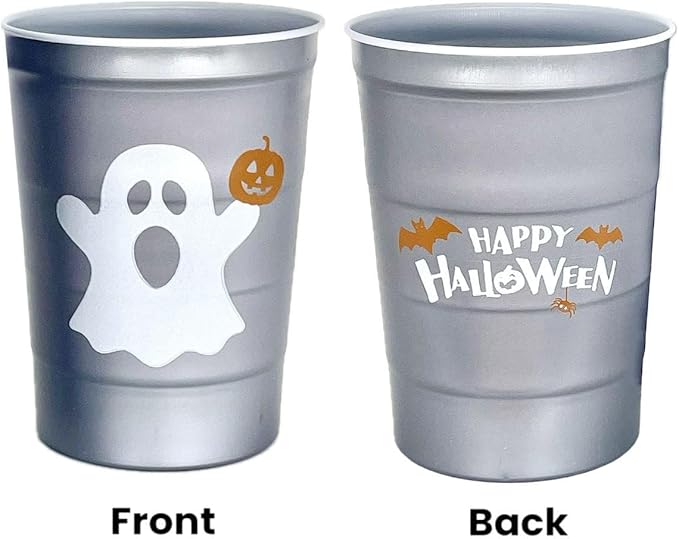 - Halloween Party Cup: Featuring "Happy Halloween" on one side and a ghost and Jack-o-Lantern on the other, our party cups are 16-ounce capacity, just right size for a chilled drink; easy to recycle