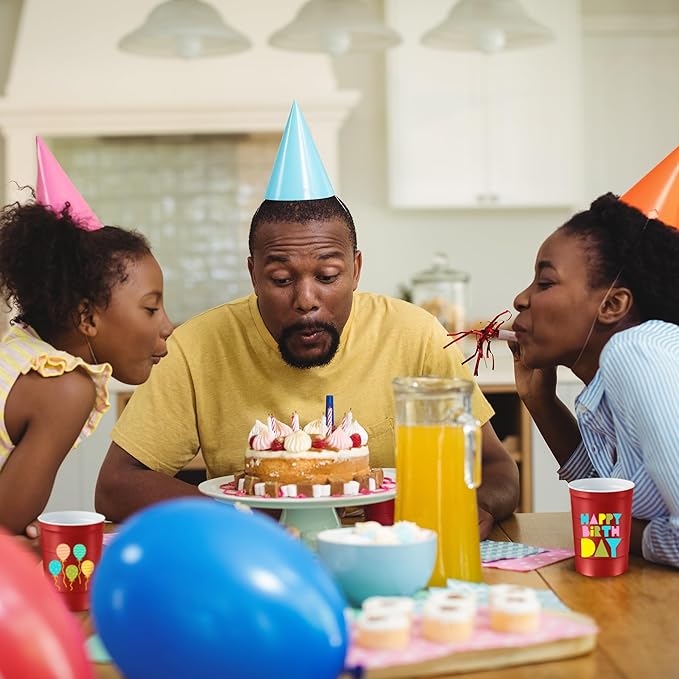 - Versatile Birthday Cup: Featuring "Happy Birthday" on one side and 5 colorful balloons on the other, our party cups are 16-ounce capacity, just right size for a chilled drink; easy to recycle