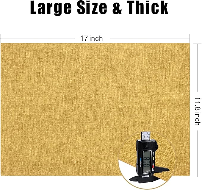 - HEAT RESISTANCE: Our high-quality table mats measure 17 x 11.8 x 0.08 inches. This thickness can protect your delicate dining table from white marks. Maximum heat resistance up to 212 °F (100 °C)