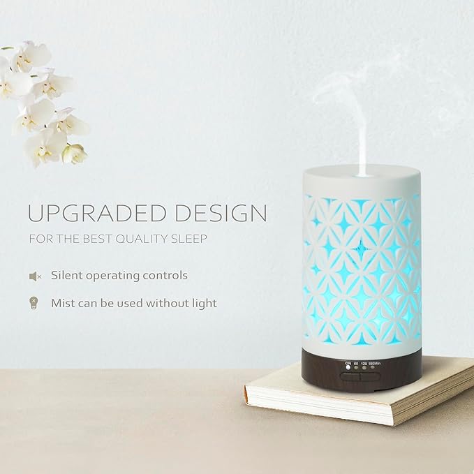 - Ceramic Essential Oil Diffuser with 7 color Night Light is the perfect match, it’s the best way to present the gleam from the ceramic material. It’s a great companion for you to focus, study, yoga or sleep.