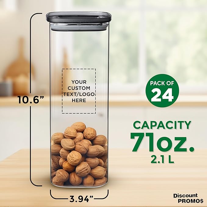 DISCOUNT PROMOS Custom Meridian 71 oz. Glass Storage Jars Set of 24, Personalized Bulk Pack - Durable Kitchen Organization, Home Decor Essentials, Food Storage Solutions - Clear