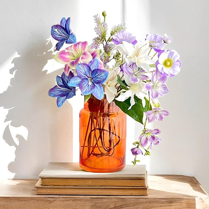 - 【Modern Glass Flower Vase】- This orange vase features a simple and stylish cylinder design, while the mouth of the vase is reduced to a certain size to achieve a more beautiful flower arrangement and is very easy to clean. This wide mouth glass vase is suitable for roses, lilies, tulips, peonies, sunflowers and more. This elegant and stylish large vase is suitable for modern farmhouse, minimalist, bohemian and classic style houses.