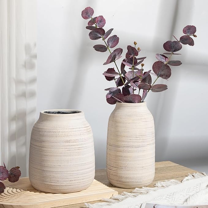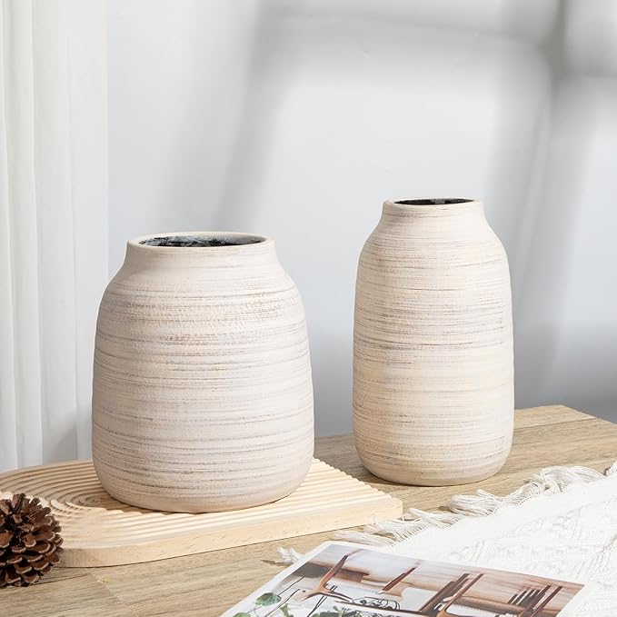 - TIMELESS HOME DECOR: The antique-inspired design and neutral color palette make this vase a versatile piece that can easily complement various interior styles, from farmhouse and rustic to modern and eclectic. It serves as a perfect accent piece for living rooms, entryways, weddings, partys, cofee table, kitchen counter or dining tables.
