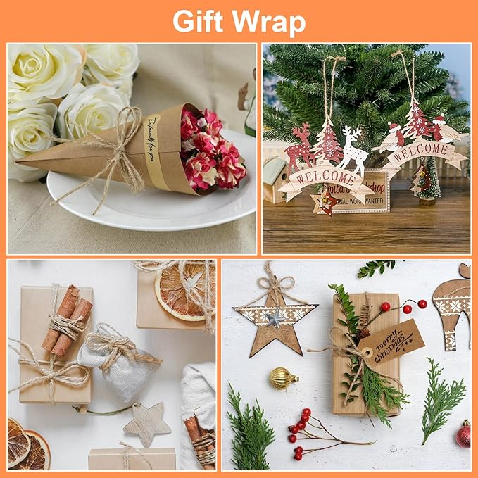 - 【Eco-Friendly Gift Packing Material】Our 2mm twine string is made of high-quality natural fibers, strong but soft and wear-resistant. The rope is biodegradable, easy to use and won't hurt environment