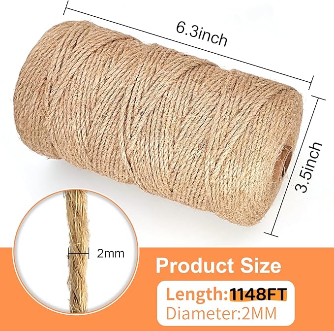 Twine String, 2mm 1148FT Jute Rope for Handmade Arts Crafts Gift Wrapping, Burlap String for Gardening Climbing Plant, Hemp Cord for Halloween Christmas Wedding Decoration