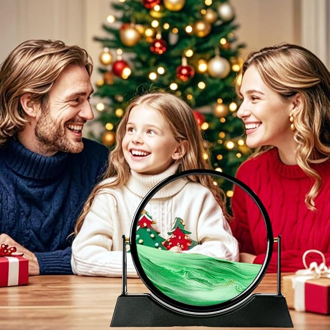 ZSDSZDZY Moving Sand Art Picture Liquid Motion, 3D Quicksand Décor, Deep Sea Sandscapes with Display Flowing Sand Frame for Relaxing, Desktop Office Home Decoration (Green)
