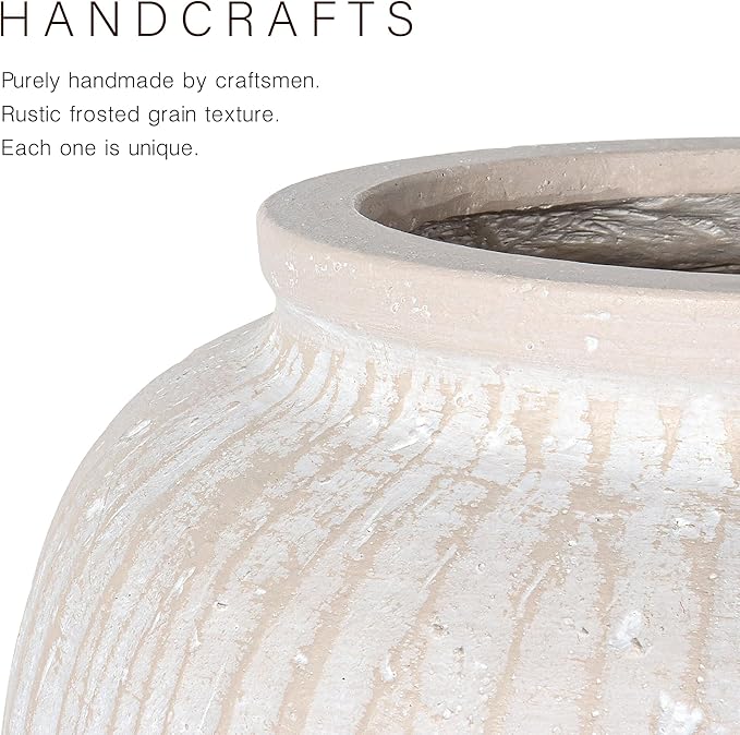 - [RUSTIC VASE] A vintage vase in true farmhouse style. We use the unique whitewashed terracotta process and vintage design, abandon complex shapes, and return to the original simple terracotta vase design, to add rustic farmhouse-style decoration to your home.