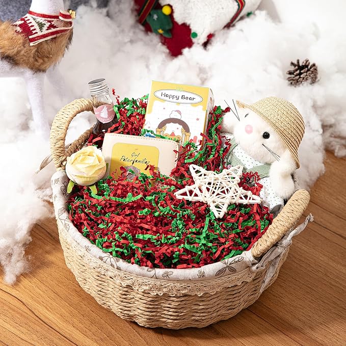 - Shredded Paper for Gift Box: Decorate your gift with this green and red crinkle paper to fully display your gift and make your gift more attractive.Perfect to fill the extra spaces in your gift boxes or basket.