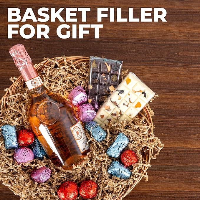 - 2.2LB Generous Quantity: Plenty of kraft-colored, crinkle-cut shredded paper to fill multiple gift baskets or boxes, ensuring you have enough for all your gift-giving needs