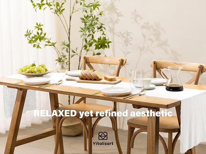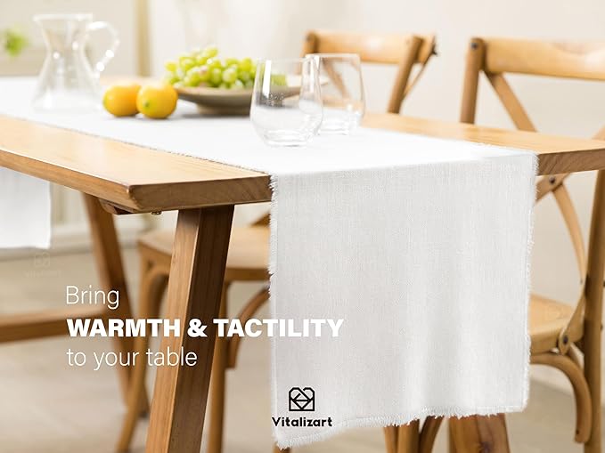 Vitalizart White Table Runner 14 x 120 Inches Long Slub Texture Cotton Linen Table Runner for Rustic Home Decorations Dining Room Wedding Decor Reception Bridal Shower Thanksgiving Christmas