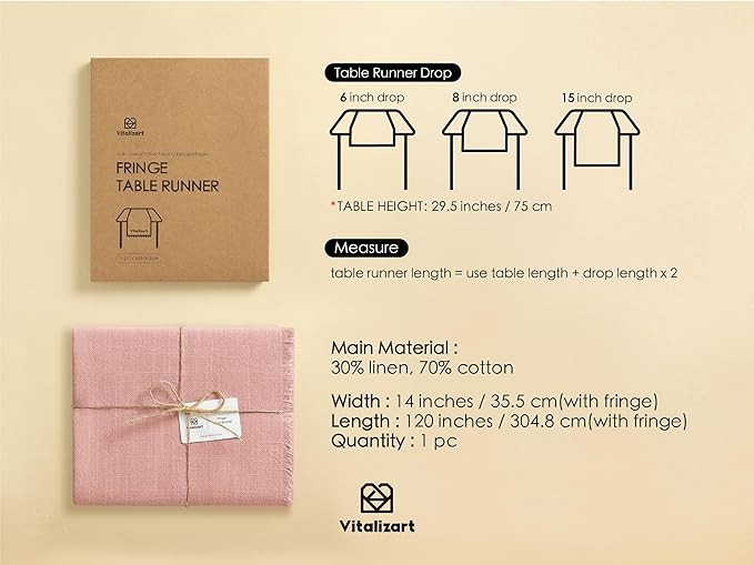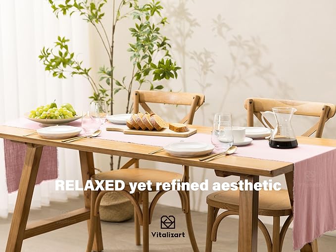 Vitalizart Pink Table Runner 14 x 120 Inches Long Slub Texture Cotton Linen Table Runner for Rustic Home Decorations Dining Room Wedding Decor Reception Bridal Shower Thanksgiving Christmas