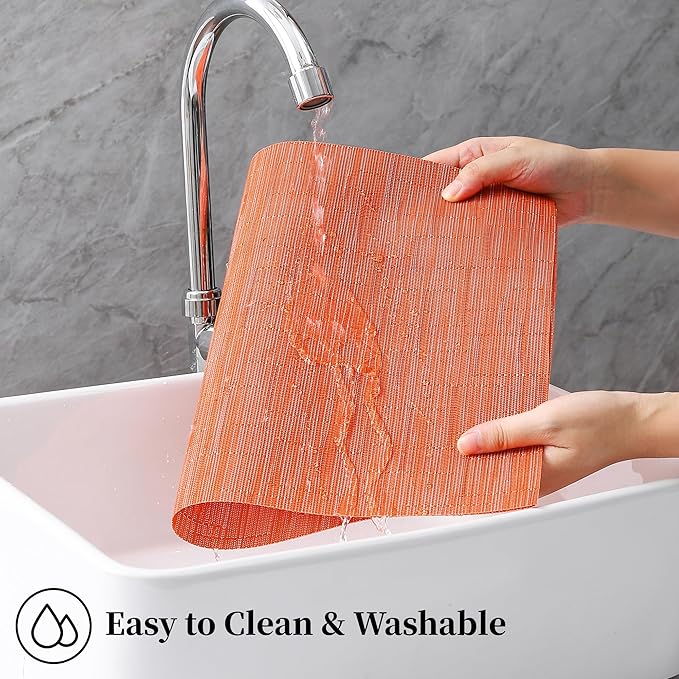 Leetaltree Orange Placemats Set of 12 - Heat Resistant Non-Slip Place mats for Dining Table, Washable Durable PVC Vinyl Woven Table Mats(Orange, 12)