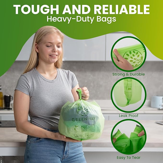 - 100% Compostable Trash Bags - Made from plant-based materials, our Greenway bags are fully compostable, breaking down into nutrient-rich compost. Please store your compostable bags in a cool and dry place.