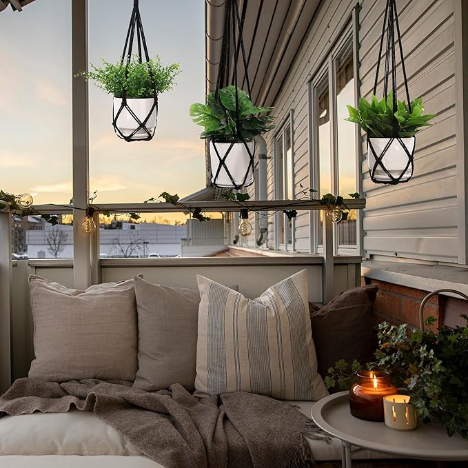- 【Stylish And Unique】The modern, vintage-inspired macrame plant hanger adds the perfect touch to your room and living room. This beauty would be gracing your home or balcony garden, or brightening up an office. Easily add some special to your beautiful bohemian home decor, sweet farmhouse decor, or modern minimalist style.