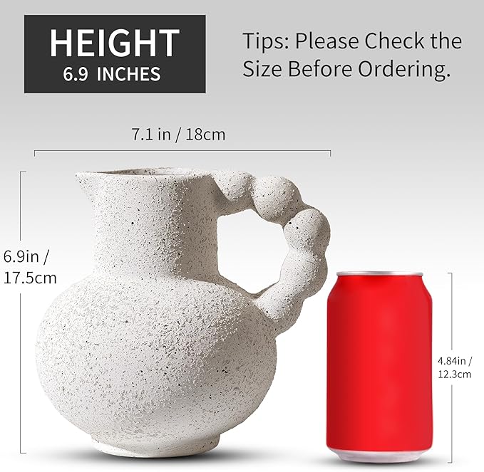 - [SURE YUESI Rustic Pitcher Vase] Inspired by traditional Chinese artistry, this handcrafted rustic white pitcher vase brings a touch of vintage charm to any decor. The elegant 6.9 inch design is perfect for enhancing your living room, bedroom, dining room, coffee table, hallway, bookshelf, fireplace, or office. Ideal for farmhouse, Scandinavian, and rustic home decor styles.