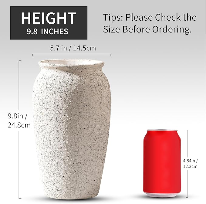- High-Quality Handcrafted Ceramic: The SURE YUESI white rustic-style large vase is crafted from 100% premium ceramic, ensuring durability and high quality. This timeless vase will keep your decor looking fresh and up-to-date year after year. Perfect for displaying fresh flowers, dried flowers, or faux florals, this vase adds a charming touch to your home life.
