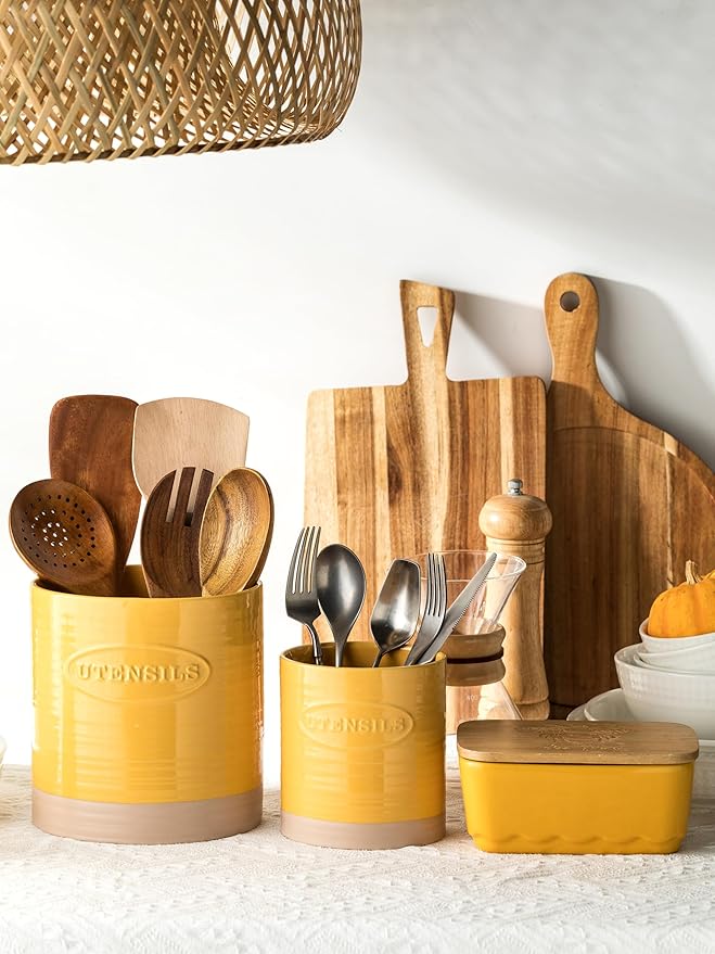 - Chic Two-Tone Design: The vibrant, harvest-inspired yellow color brings warmth and brightness to your kitchen, making it perfect for the fall season and festive holidays like Thanksgiving.