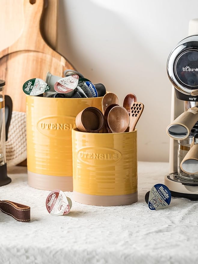 - Easy Countertop Organization: Keep your kitchen tidy by organizing utensils in this space-saving utensil crocks. The oval opening allows easy access to frequently used tools, keeping your countertop clutter-free.