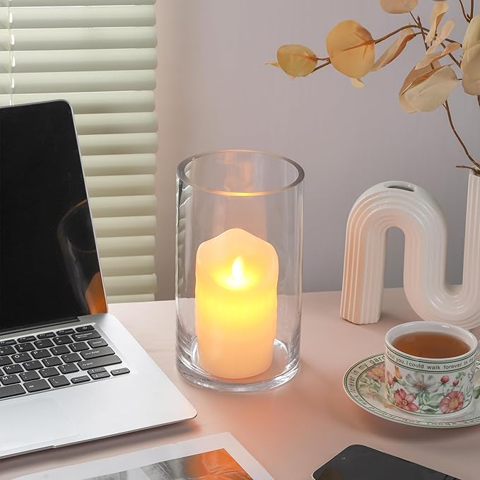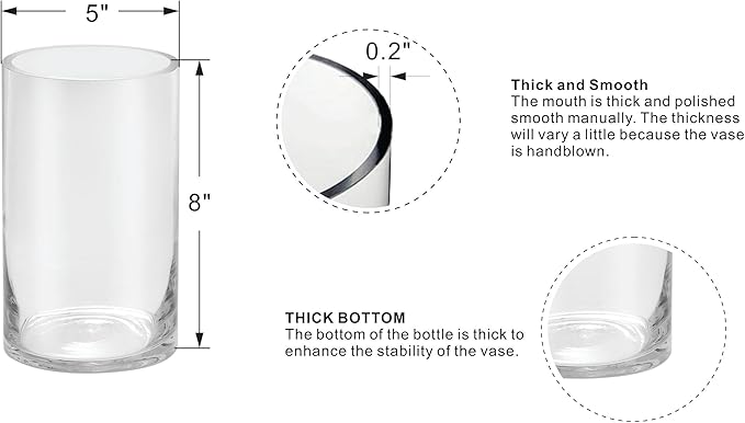 5’ Wide 8" High Large Hand Blown Sturdy Clear Cylinder Glass Vase, Centerpiece Flower Vase for Rose, Tulip, Boquets, Hurricane Candle Holder (1, 5"x8")