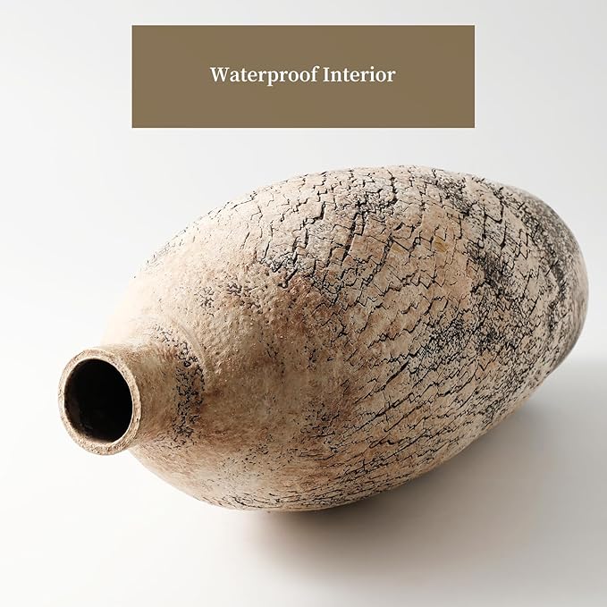 - PREMIUM DECORATIVE VASE: Made from high-quality ceramic material. Its sturdy construction and hefty body are a testament to the durability and quality of the materials used in its creation. An aged textured ceramic floor vase can be showcased as a standalone art piece or transformed into a decorative vase by filling it with artificial flowers.