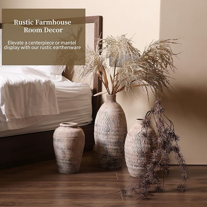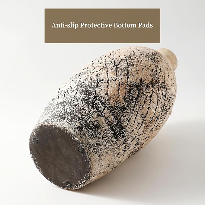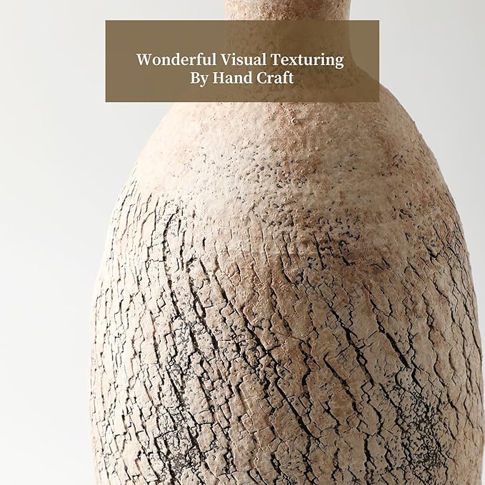 - ONE-OF-A-KIND TEXTURED FLOOR VASE: This rustic farmhouse floor vase is a perfect addition to any farmhouse-themed decor. The crackle pattern and textured surface make it a unique piece that is sure to catch the eye. Its pinky beige color and mid-century modern style give it a classic yet modern feel that will complement any room decor aestheics.