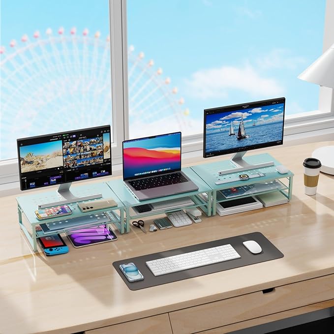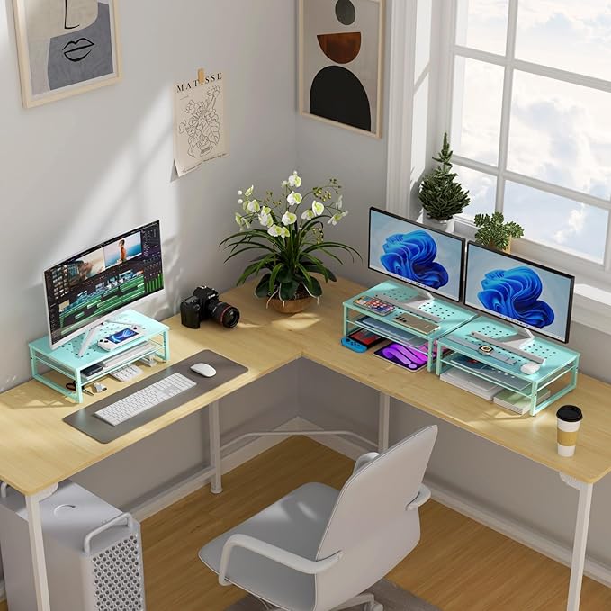 gianotter 2-Tier Metal Monitor Stand Riser, Desk Organizer for Monitor, Office Desk Storage Organizer for Office Supplies (Blue)
