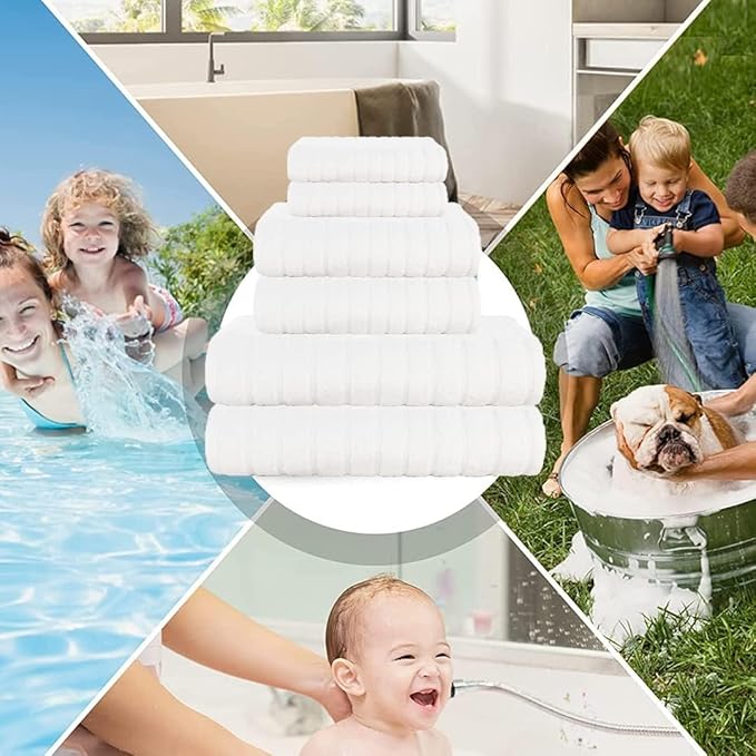 - INGREDIENTS: The set includes 2 pieces of washcloths measuring 12 x 12 inches, 2 pieces of towels measuring 16 x 28 inches and 2 pieces of bath towels measuring 27 x 55 inches.