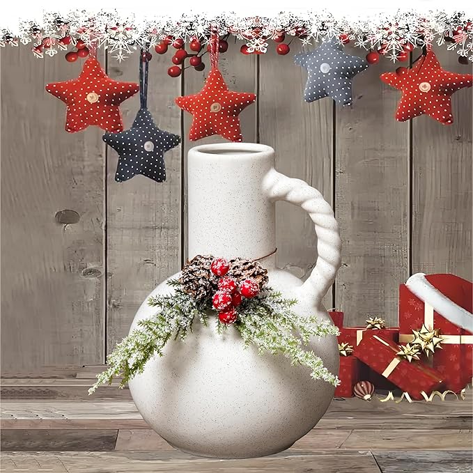 - 【Modern Farmhouse Design】 The Prettidecor White Ceramic Vase with handle features a modern farmhouse design with a small handle, adding a touch of rustic charm to your home decor. Its farmhouse design makes it suitable for various interior styles.