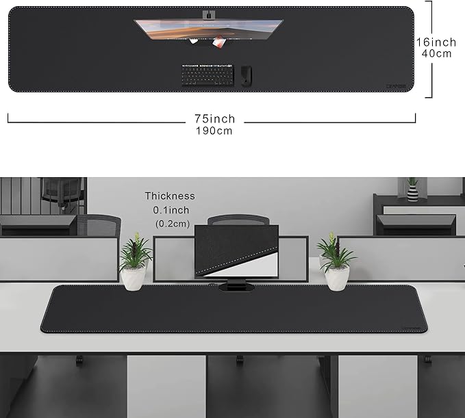 - EXTRA LARGE LEATHER DESK PAD: 74.8" x 16"(190cm x 40cm) large table pad, Its comfortable and smooth surface can be work as a mouse pad, desk pad, desk mat, desk blotters and writing pad,which is large enough to accommodate your laptop, mouse and keyboard,coffee , tea and water glass, snacks,It is perfect for both office and home.