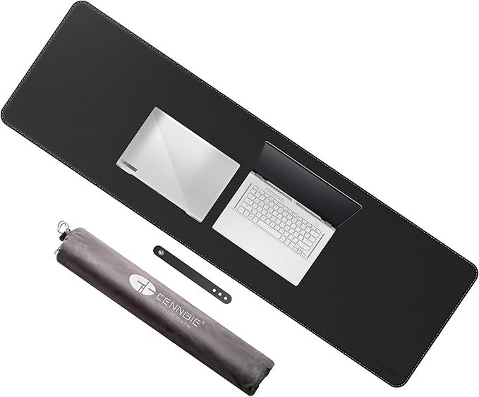 CENNBIE Leather Desk Mat Protector, 51.2" x 16" Extra Large Leather Office Desk Pad Mat for Full Desk, Computer Desk Mat on top of desks - Oversized Large Mouse Pad (Black)