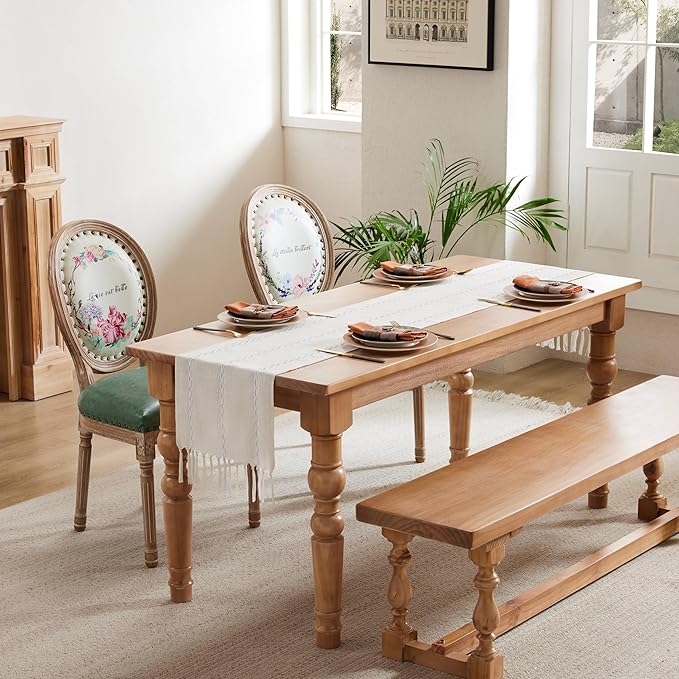 - Refresh the look of your table with this boho table runner, impressing guests at whether a casual dinner or special event, putting it in your dining room for that farmhouse or boho look. It can not only dress up a table, but also dress up your feeling.