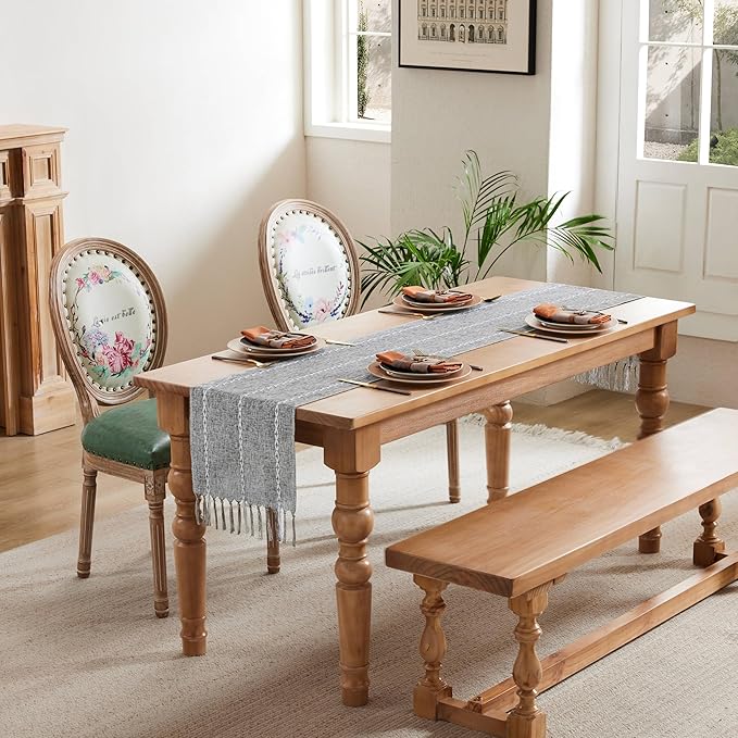 - Refresh the look of your table with this boho table runner, impressing guests at whether a casual dinner or special event, putting it in your dining room for that farmhouse or boho look. It can not only dress up a table, but also dress up your feeling.
