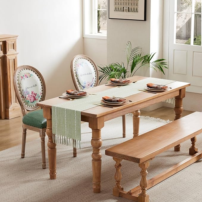 - Refresh the look of your table with this boho table runner, impressing guests at whether a casual dinner or special event, putting it in your dining room for that farmhouse or boho look. It can not only dress up a table, but also dress up your feeling.