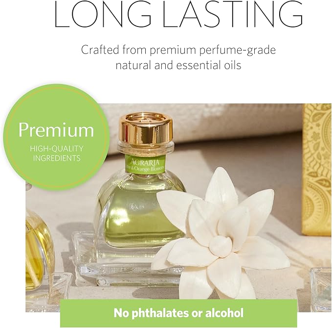 - Long Lasting Fragrance: Unlike many scented essential oil diffuser sticks sets that evaporate faster, Agraria flower and reed diffusers for home are made with high quality perfume-grade oil fragrances that last up to 6 months
