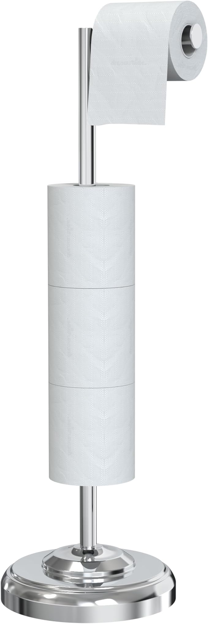 Freestanding Toilet Paper Holder Stand with Storage – Holds 4 Extra Rolls – Chrome Toilet Paper Holder for Bathroom – Sturdy Base, Classic Retro Style, Space-Saving Bathroom Storage Organizer