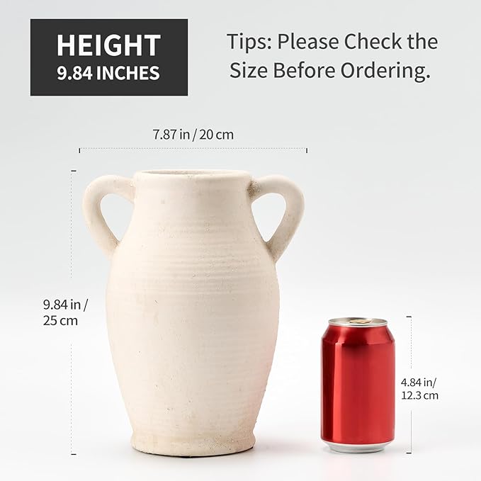 - 【Versatile Decor Piece】The terracotta vase measures 9.8" height and 7.87" width (include handles). Perfect for fresh or dried flowers. Effortlessly elevate the aesthetics of any room -be it your living room, kitchen, bedroom,bathroom, or office-with our product. It seamlessly blends with various decor styles,including boho, rustic,modern farmhouse,and cottagecore.For an extra pop of color, simply add your favorite faux or fresh flowers.