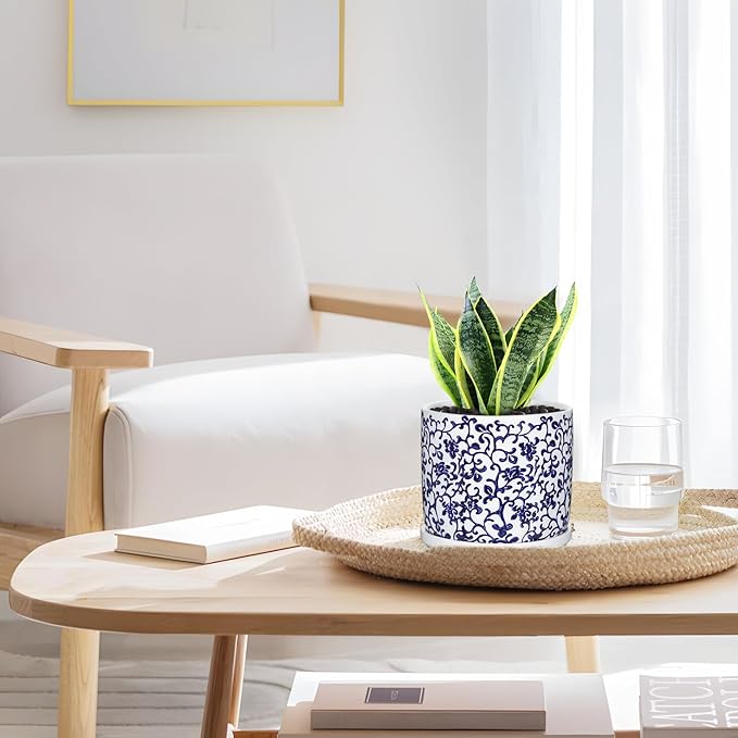 - Premium Quality: Crafted from sturdy ceramic porcelain, these blue and white planters complete smooth texture inner & outside makes them clean easily. Each planter with tray is wrapped with thick foam to avoid damage during transportation