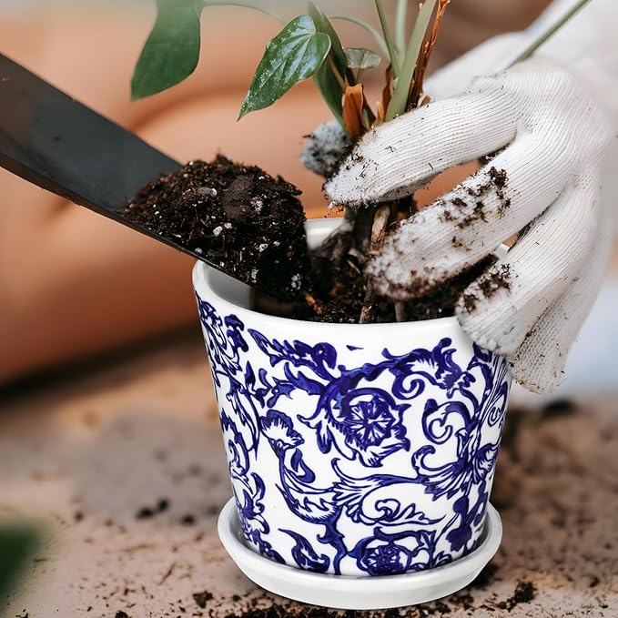 - Elegant Hand-Painted Ceramic Planter. Each blue and white ceramic planter is hand-painted with chinoiserie style, making ceramic flower pot a stunning decorative accent for any home or garden. Whether used as ceramic planters for indoor plants on a windowsill, desk, or bookshelf, or as ceramic outdoor pots on a patio or balcony, these flowerpots elevate your space with artistic charm.