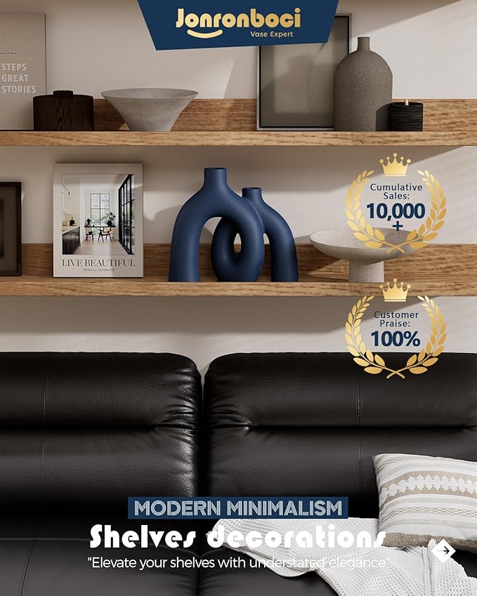 - Hug Donut Nvy Blue Decor Vase Use Scene - Minimalist and modern design Coastal&Nautical Style Decorations vases for living room large shelf, bookcase, Entrance table, sofa table, console table, fireplace or mantle. Of course, Your use it to display dried flowers, reeds, natural pampas grass, rabbit tails, or any kind of fresh flowers.
