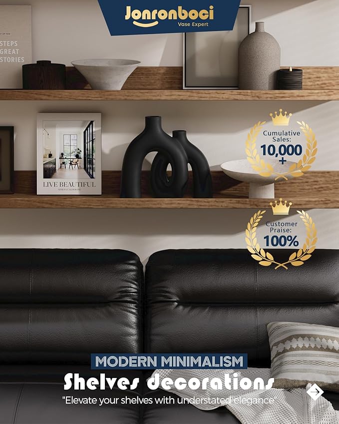 - Black Hug Donut Decorative Vase Use Scene - Minimalist and modern design Conjoined Boho Style Decorations vases for living room large shelf, bookcase, Entrance table, sofa table, console table, fireplace or mantle. Of course, Your use it to display dried flowers, reeds, natural pampas grass, rabbit tails, or any kind of fresh flowers.