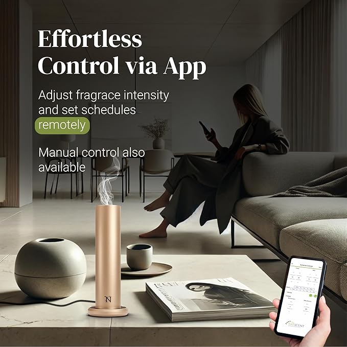 - Smart Control Options for Convenience: Control this aromatherapy essential oil diffuser manually with buttons on the base or remotely with the Natscent app. Enjoy the flexibility of a 24/7 timer and nine customizable cycle schedules.