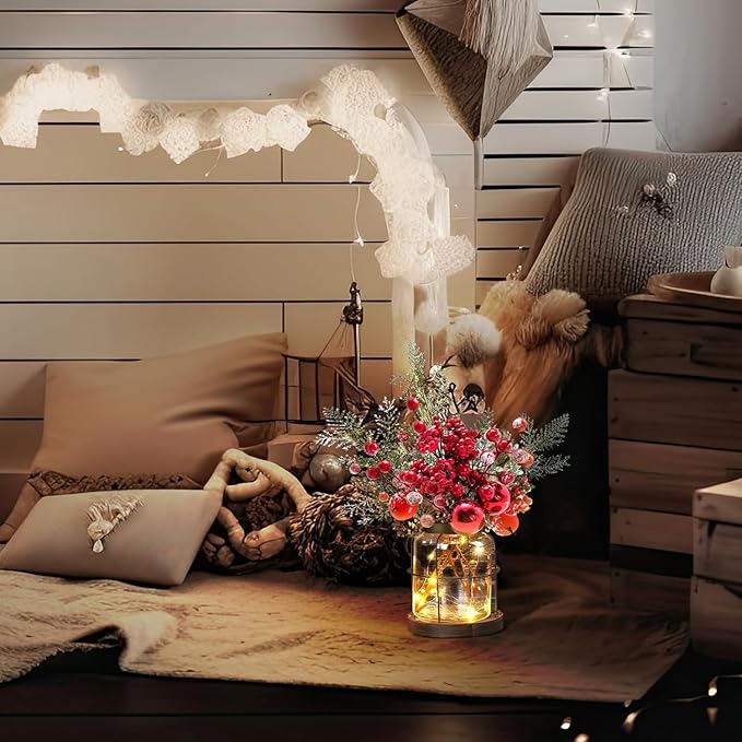 - Realistic Farmhouse Design: Our Christmas-themed vase uses lifelike artificial plants and an adjustable string of lights to create a warm and cozy atmosphere. Perfect for any room in your home.