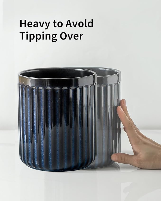 - Textured Elegance: This ceramic navy blue utensil holder features a ribbed texture with lighter flecks, enhancing your kitchen decor and adding a tactile touch that enriches your countertop’s charm